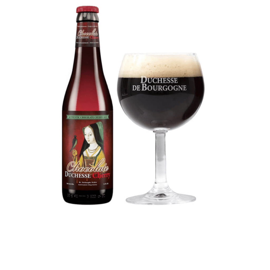 Duchesse Chocolate Cherry, crafted by the Verhaeghe-Vichte Brewery, is a barrel-aged dark cherry beer that undergoes a 6-month maturation process in oak casks. This results in a delectable balance of sweetness and sourness.